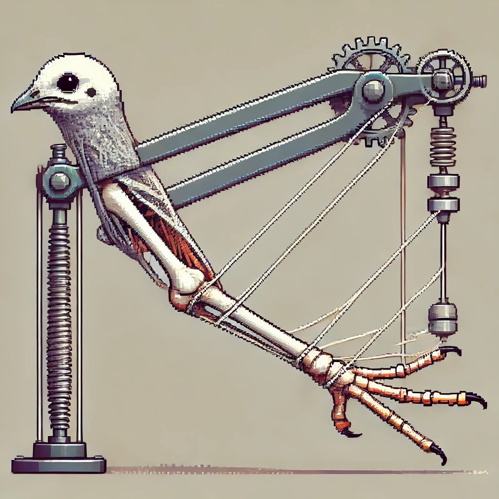 The bird subsequently does not have to think or concentrate to remain standing. Everything is based on the system’s elasticity. This is a kind of embodied intelligence where the body alone solves the problem, with no intervention by the brain, thereby doing so without consuming energy.